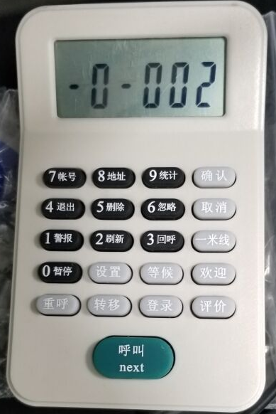| 屏幕显示 | 6位LCD显示,前两位显示当前等候人数,后四位显示当前呼叫号码 |