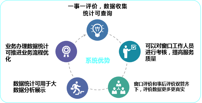政务服务水平的直接体现就是服务窗口,服务窗口是企事业单位面对民众沟通的第一场所,广大群众 在这里办理业务、 提出建议和意见,因此,每个窗口服务人员的形象、能力、效率等代表了服务单位的形象。为此,构建全面多样化的服务质量评价体系更能有助于推动行业服务质量的提高。