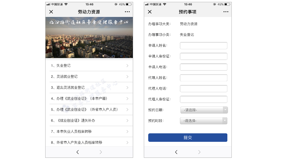 进入行政服务中心微信公众号 → 事项办理 → 居民办事 → 我要预约 → 选择需要预约的业务 → 选择具体事项 → 填写预约信息 → 提交,即可完成事项办理的预约。