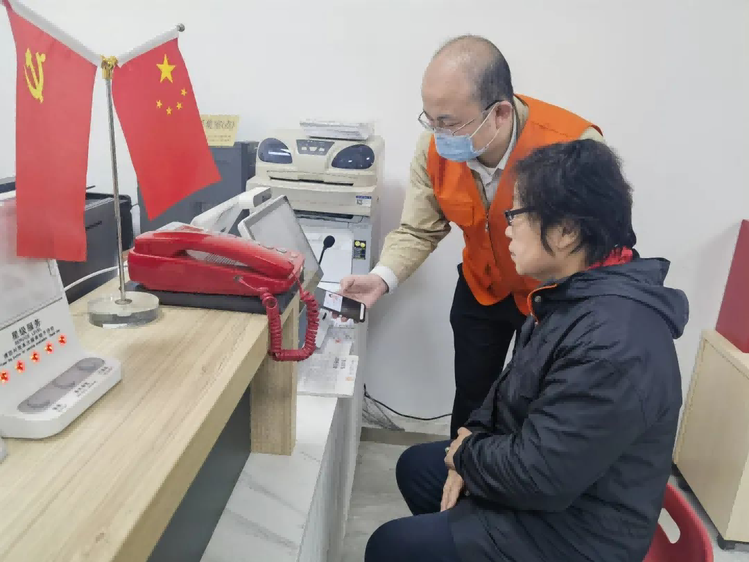 “听说现在不用去社区事务受理中心,直接在居委会就能更换,我赶紧就过来了。”毛阿姨是一名社区党员志愿者,平日里对接了小区6户“纯老家庭”,对于向顾老伯这样腿脚不便的结对老人,她总是主动揽下这类可以代办的业务。毛阿姨表示,对于经常要去医院配药的老人来说,就医记录册就会用得比较快,需要时常要换。虽然如今在社区事务受理中心的自助终端上办理只要几分钟,但从自己家走到中心,一个来回基本上也要30多分钟。“路上还是有点吃力的,所以这些事能在居委会办成,那实在是太好了。”现场,毛阿姨在居委会工作人员的协助下,在一台智能双屏一体机前刷了自己的电子身份证进行远程取号。等待片刻,社区事务受理中心的工作人员出现在屏幕前,与毛阿姨进行视频交流。在确认业务需求后,毛阿姨根据工作人员的远程提示,在机器读卡区域上传了顾老伯的身份证、社保卡等,3分钟不到就完成了就医记录册的更换。想到80多岁的顾老伯今年因为身体原因一直卧床不起,老伴的身体也不太好,毛阿姨又赶忙咨询中心工作人员,有什么护理的业务可以帮助老人减轻负担。在得知医保部门针对失能老人有一项长护险政策,如评定出等级的可安排护理人员上门照护时,毛阿姨立马拿出了手机联系顾老伯。在征得老人同意后,毛阿姨根据工作人员的提示,进行填表、拍照、扫描证件等程序,几分钟后顺利将老人的长护险申请事项办理完成。业务办理完成后,毛阿姨对本次远程办事服务给出了“非常满意”的评价:“谢谢这项便民服务,不但解决了老人的困难,也为我们节约了办事时间,我也要在党员群里多多宣传,让更多有需要的老人能尽快享受服务。”
