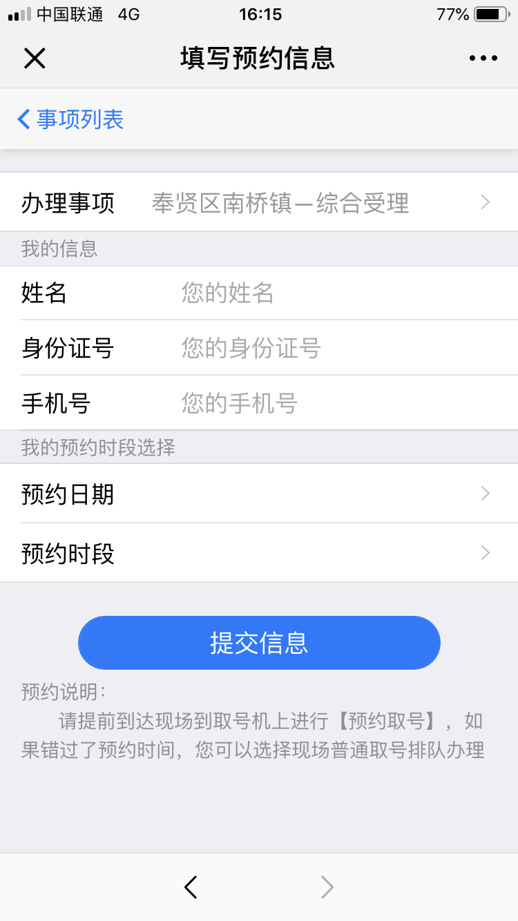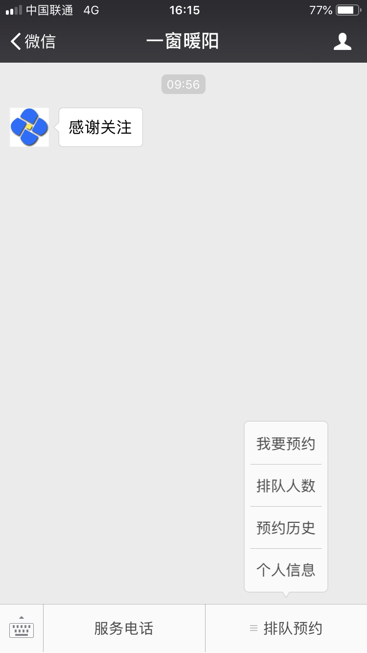 上海市奉贤区南桥镇社区事务受理服务中心完成了微信公众号“一窗暖阳”项目,办事群众可以在“一窗暖阳”公众号上进行预约取号、查看实时的排队人数情况、办事群众自己的预约历史数据以及管理自己的个人信息数据等。
