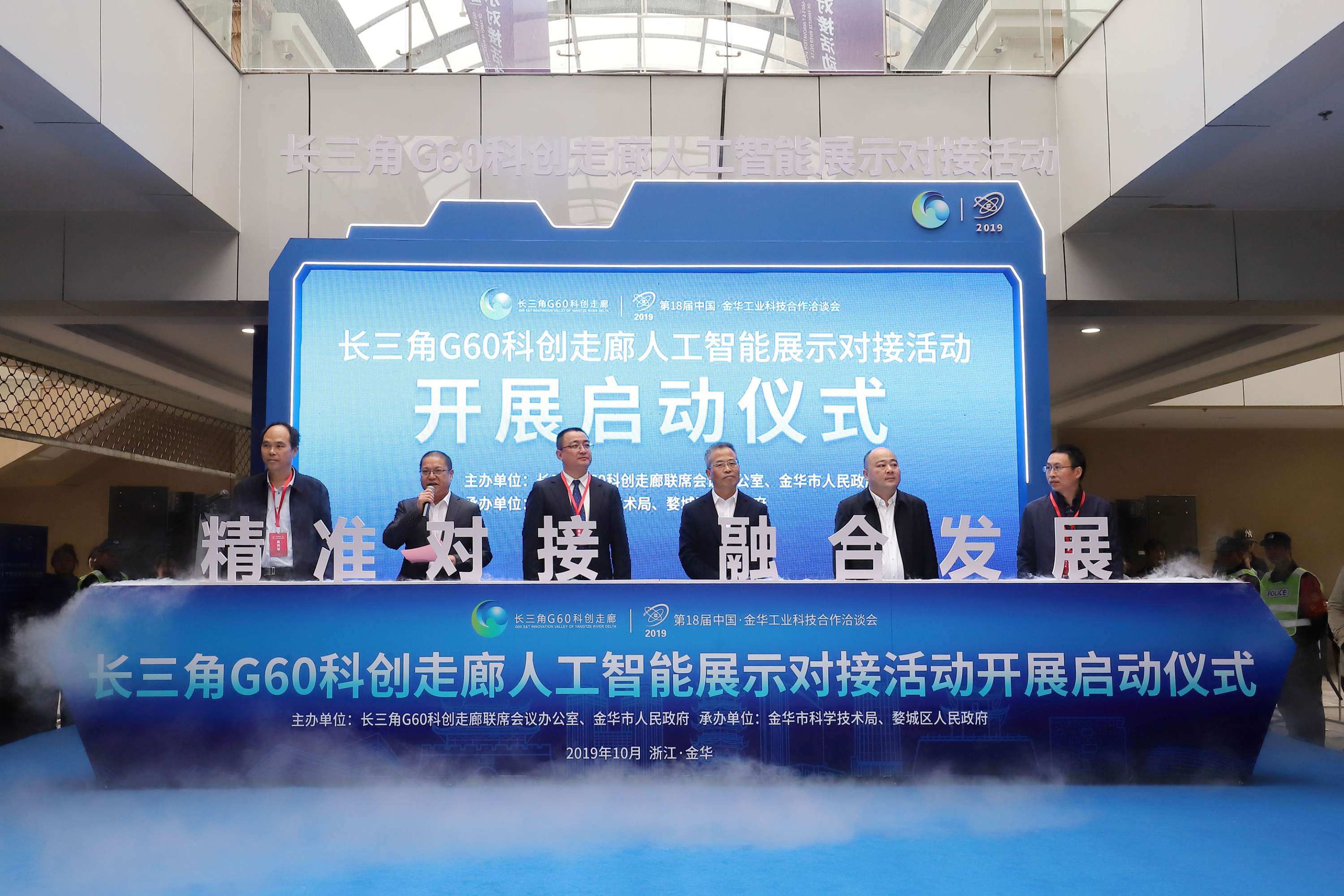金华市委常委、市政府党组成员张伟亚,长三角G60联席办科创组组长潘宏凯及婺城区委副书记、区长黄国钧在区科技局吴旭涌局长的陪同下参观婺城的参展企业。