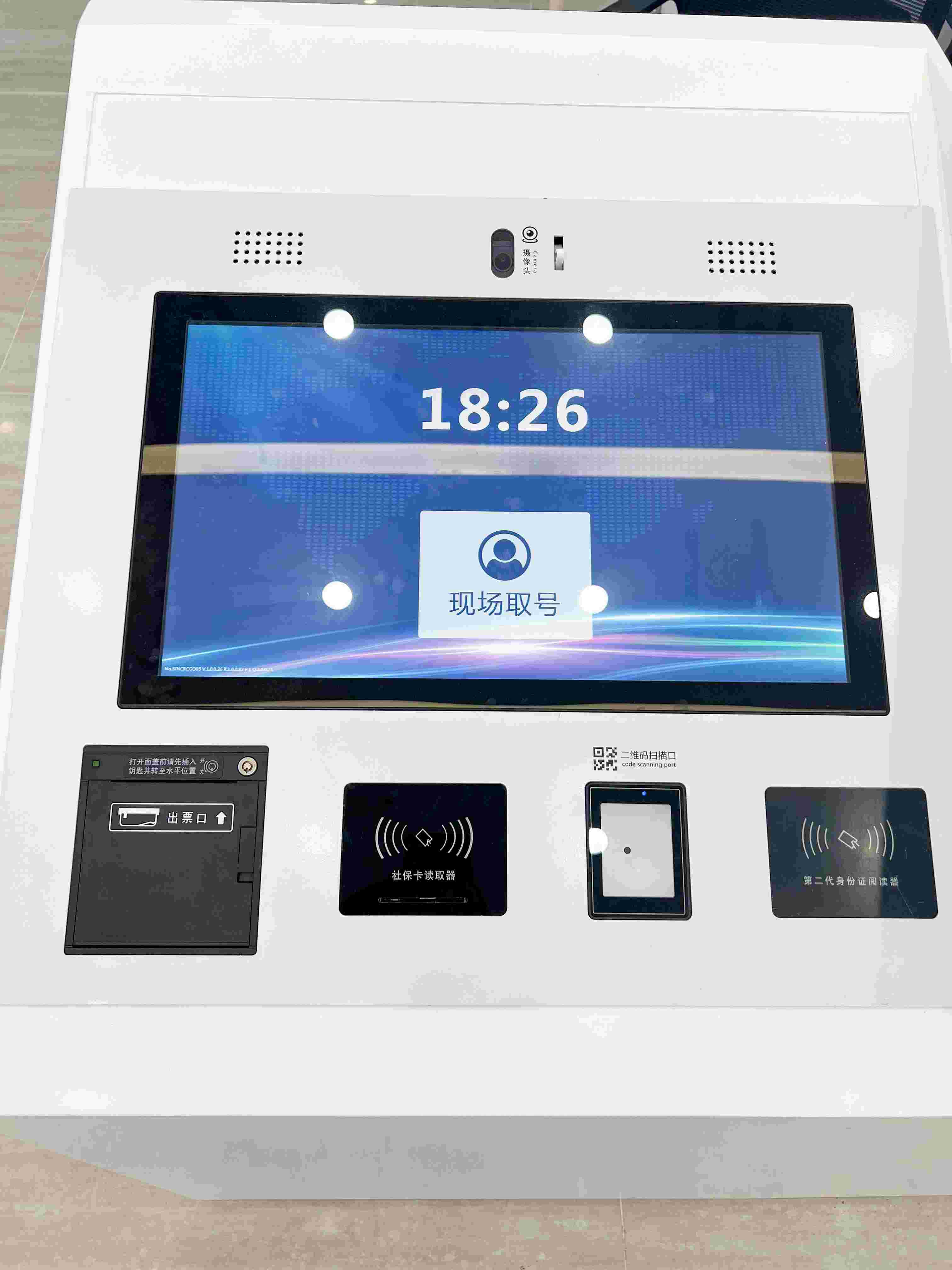 嵌入式取号机:结合现场装修,完美契合咨询台。拥有多种取号认证方式,如身份证、社保卡、当地码等,还支持人脸取号,适配绝大部分取号场景。