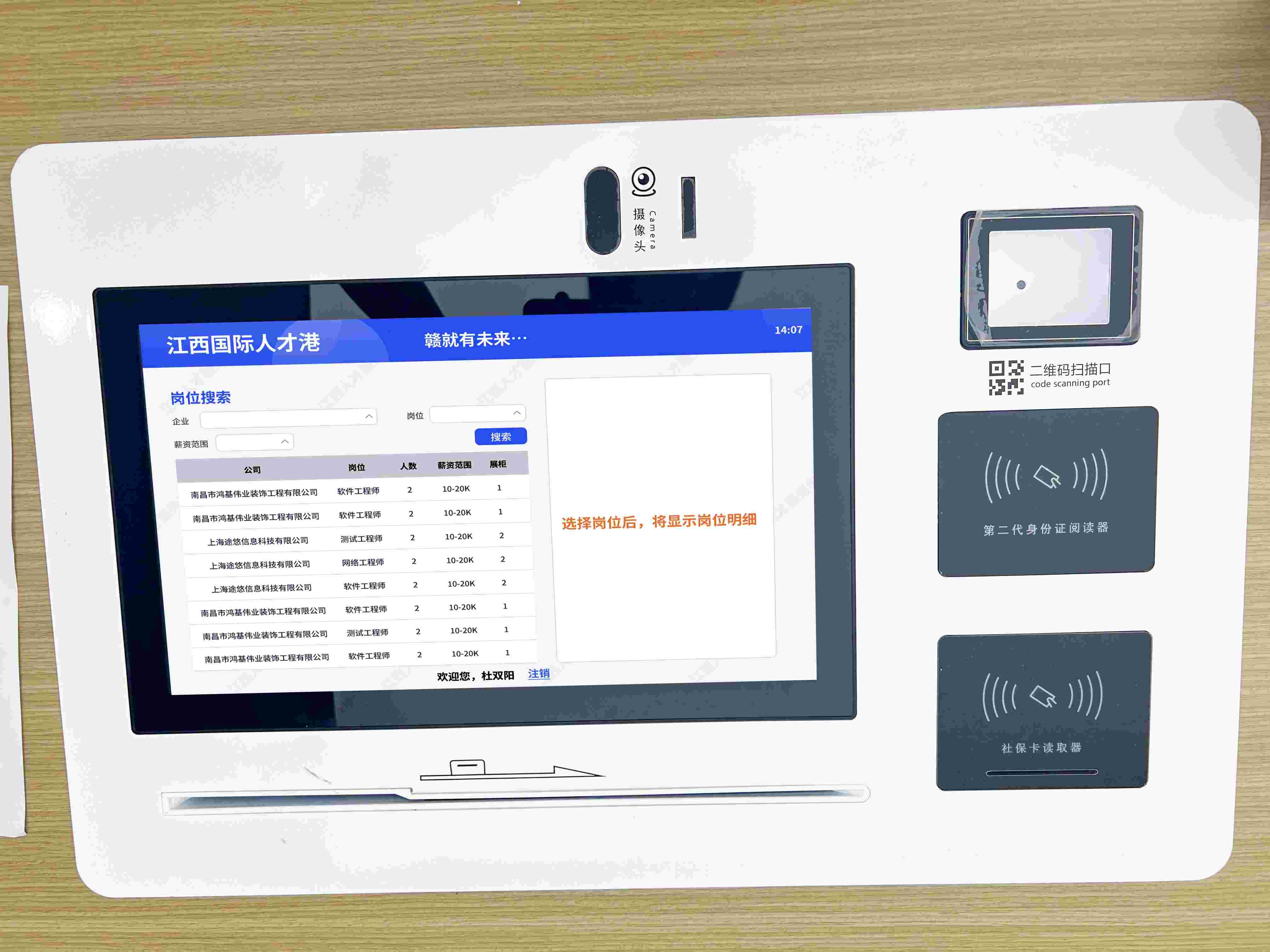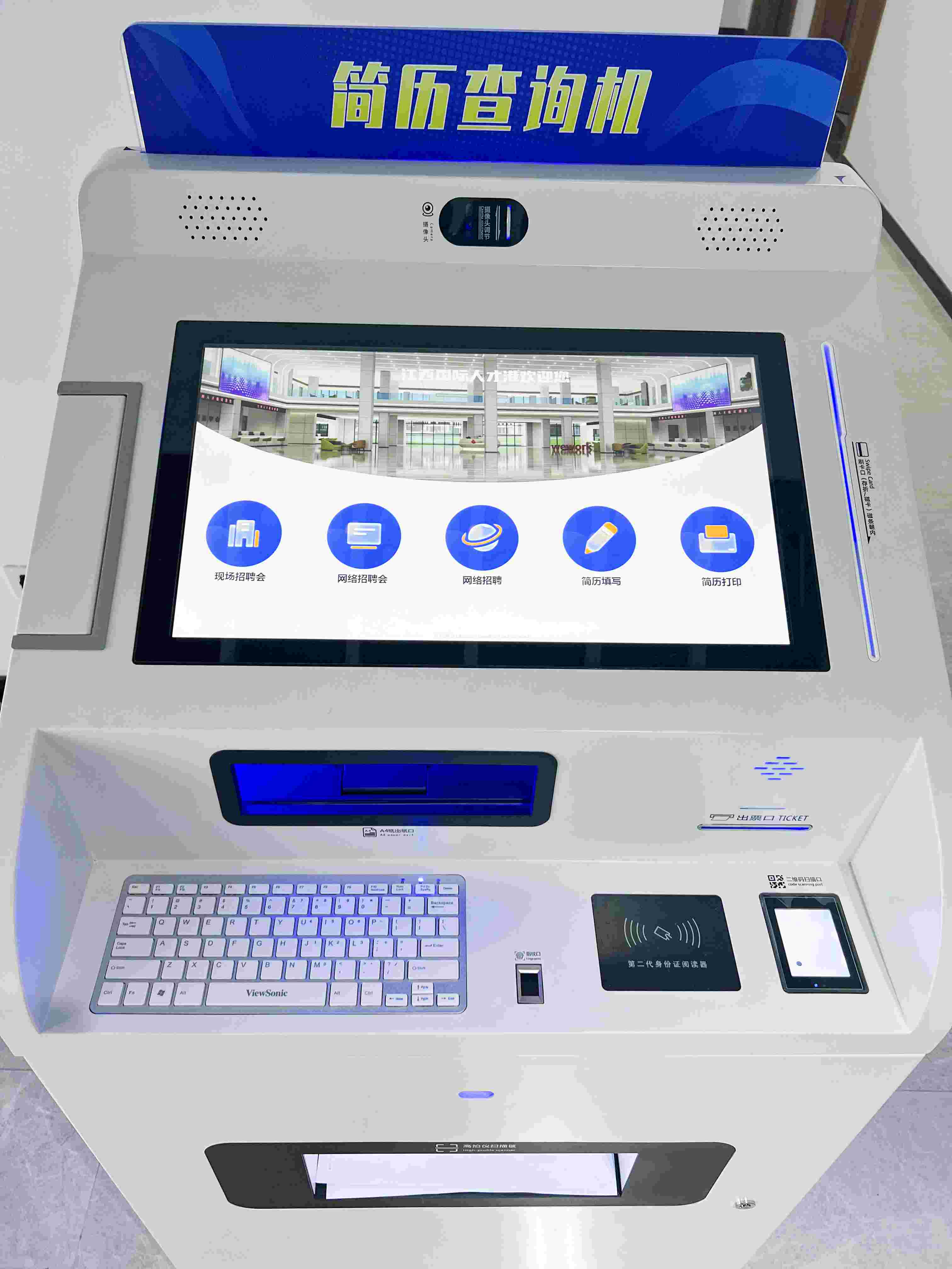 简历查询机:除了移动端可维护简历,简历查询机也可以现场维护简历。实现添加简历、岗位投递、简历打印、现场招聘会面试一站式服务。