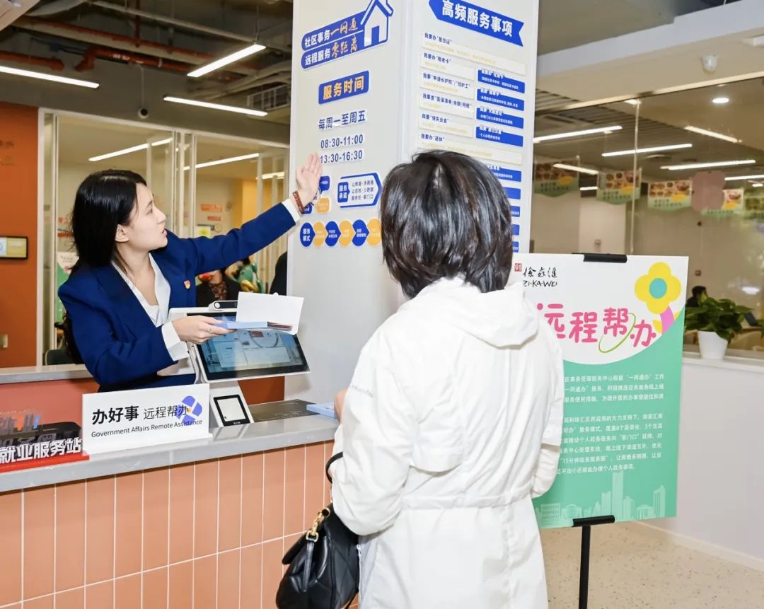 为让更多居民在家门口就能办理“居住证新办”、“发放老年综合津贴”、“就医记录册更换”等184项社区事务受理服务中心事项,区民政局进一步织密“远程帮办”延伸服务网络,推动各街镇基本形成“10分钟政务服务圈”。