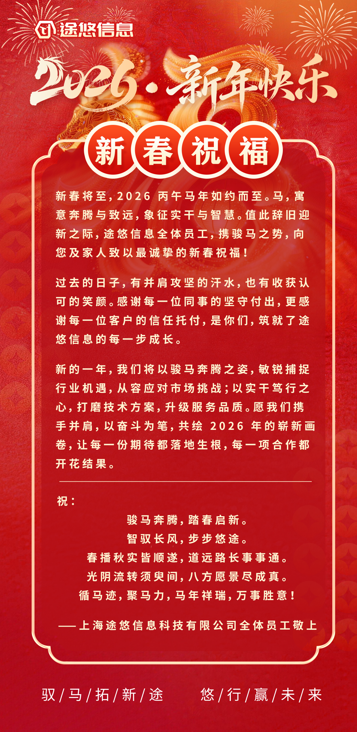 途悠信息 2026 年春节新春祝福暨放假通知